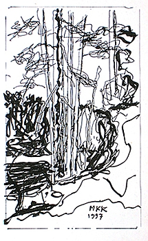 Ahvenlammen rantaa Vihdistä Tussi, 1997 10 x 14cm Kuva: Anu Kuikka