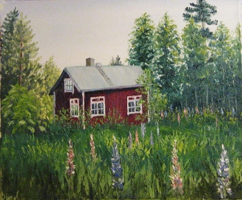 Kotisauna 59 x 40cm Öljyvärimaalaus, 1977 Pielavesi Kuva: Vuokko Mansikka-Pönni