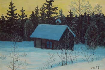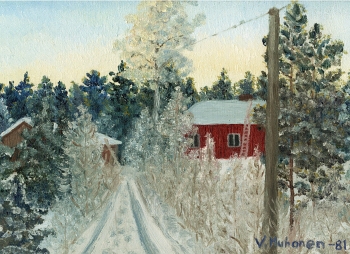 Talven keskellä 33 x 24cm Öljyvärimaalaus, 1981 Pielavesi Kuva: Vuokko Mansikka-Pönni