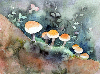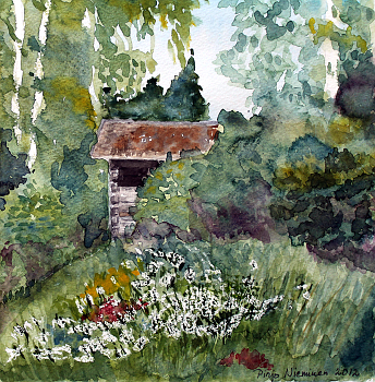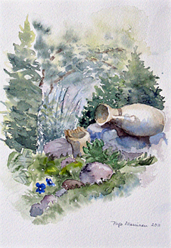 Vivamon Hiljaisuuden puutarhassa Akvarelli, 2011 Kuva: Pirjo Nieminen