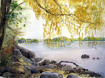 Vihdin Kirkkojärvi Akvarelli, 2011 Kuva: Pirjo Nieminen