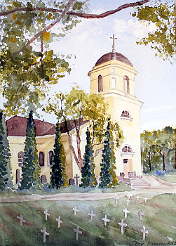 Vihdin kirkko - kotikirkko Akvarelli, 2013 Kuva: Pirjo Nieminen