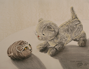 Vendin kissat 63,5 x 48,5cm Hiili/pastelli, 2004 Kuva: Paavo Hacklin
