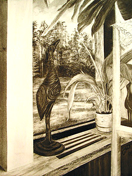 Ikkunalla 47,5 x 64cm Hiili, 2004 Kuva: Pekka Vähäsarja