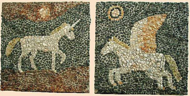 Yksisarvinen ja pegasos Mosaiikki, 2004 Kuva: Pekka Vähäsarja